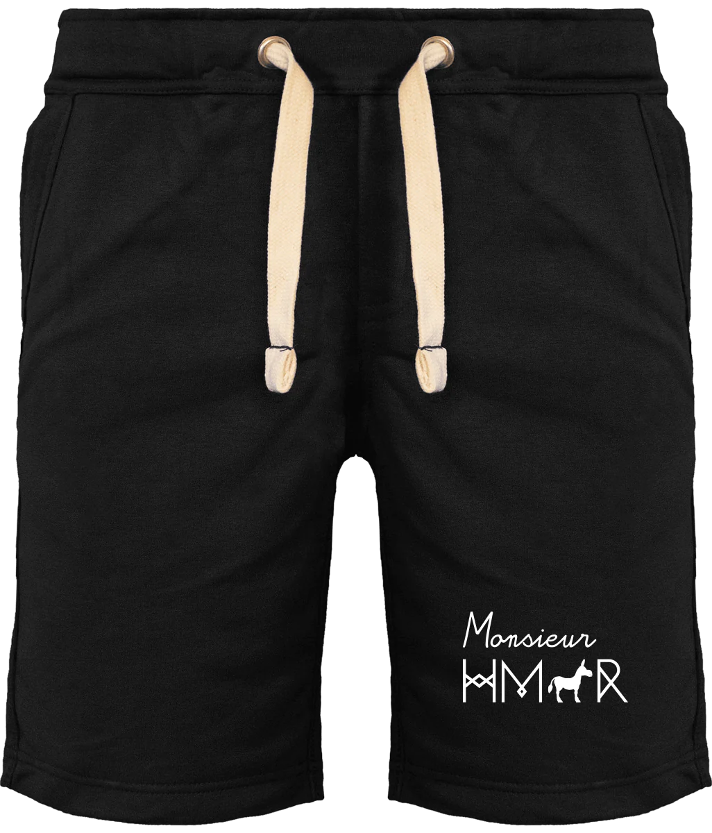 De couleur noir, le bermuda est brodé d’un Monsieur Hmar sur la cuisse gauche (280 g/m²) en blanc possède deux poches devant et une poche à l’arrière. Confortables et élégant, il a tout pour être la star de nos penderies !