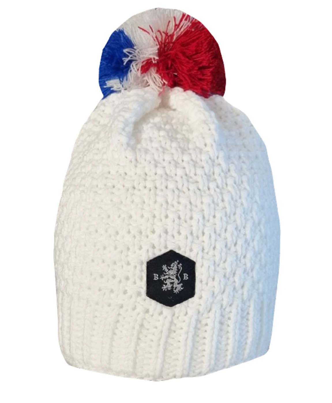 Bonnet coloris Blanc pompon Tricolore – ref. ASKI – marque BLANC BONNET