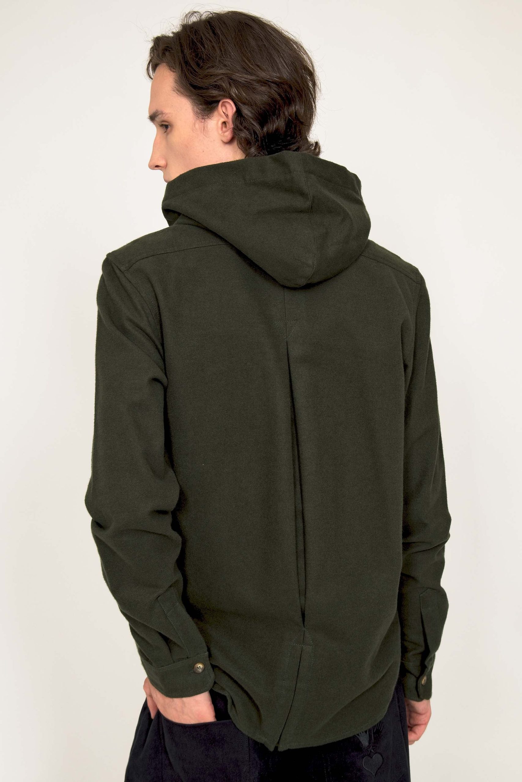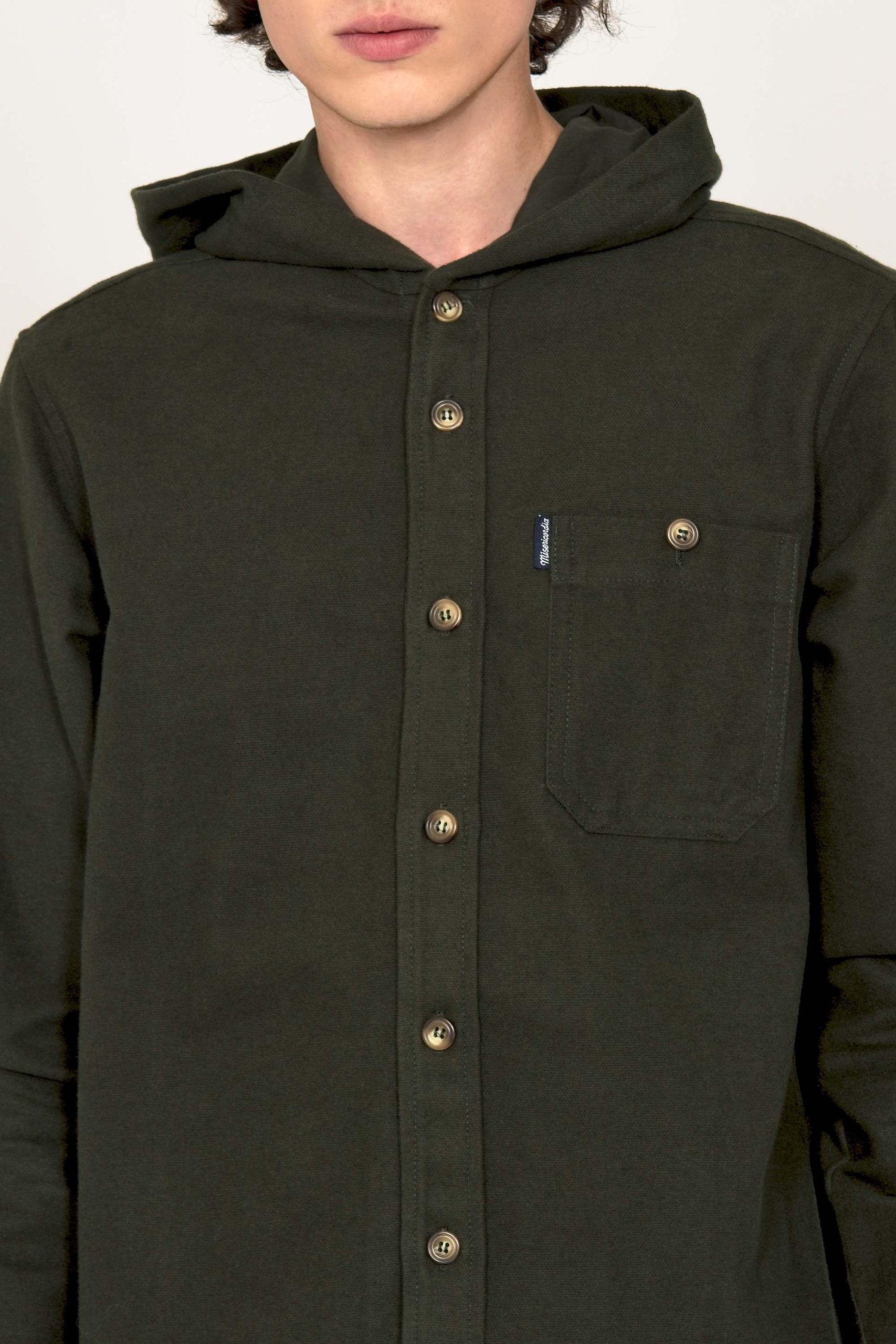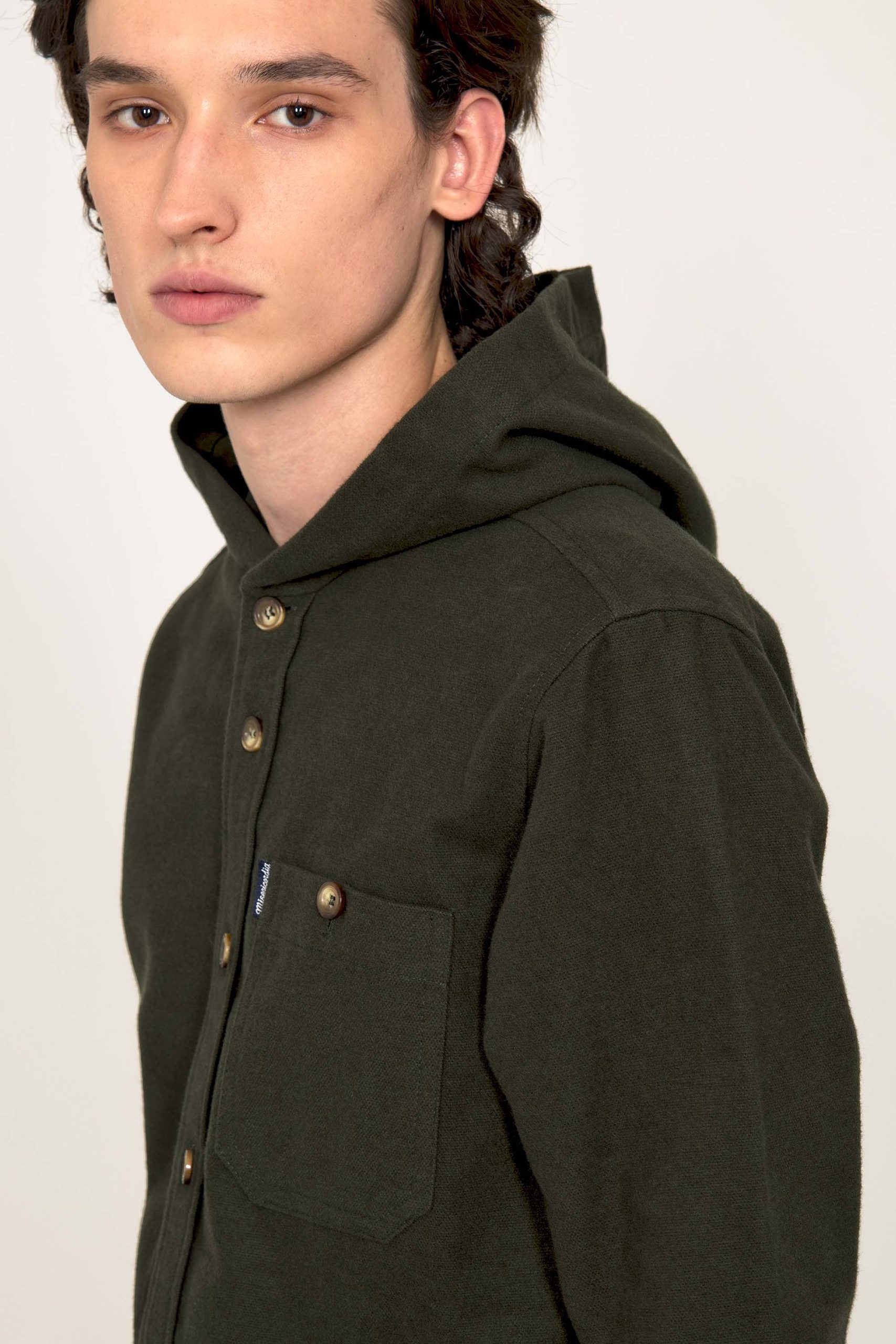 SURCHEMISE KAKI FONCÉ À CAPUCHE EN FLANELLE DE COTON