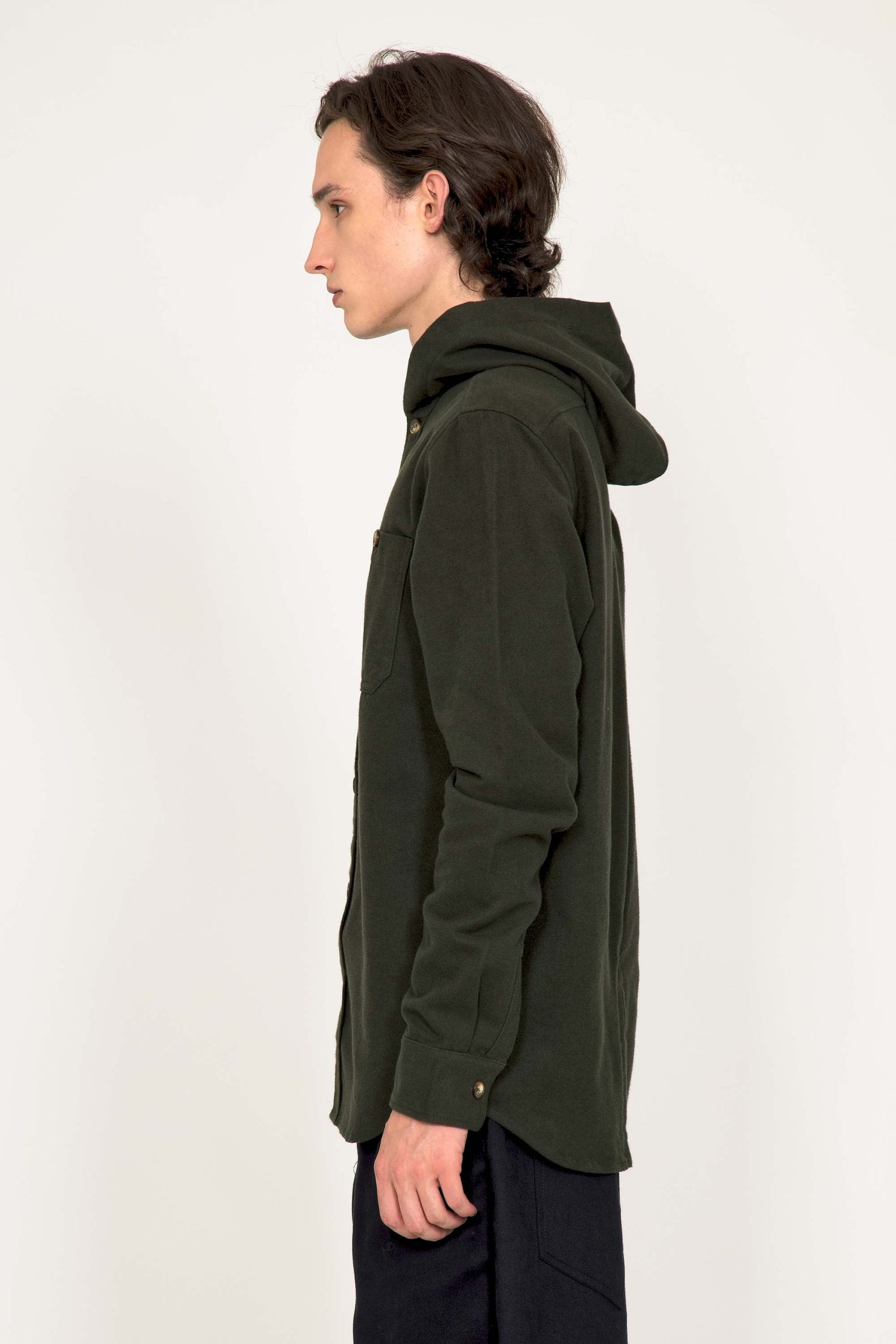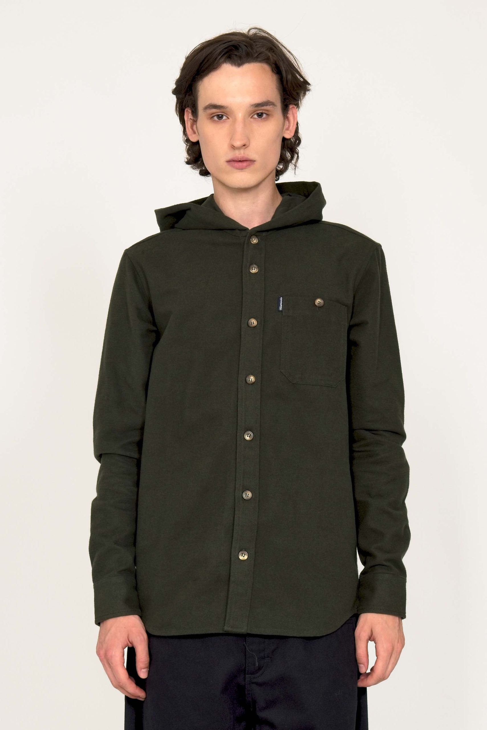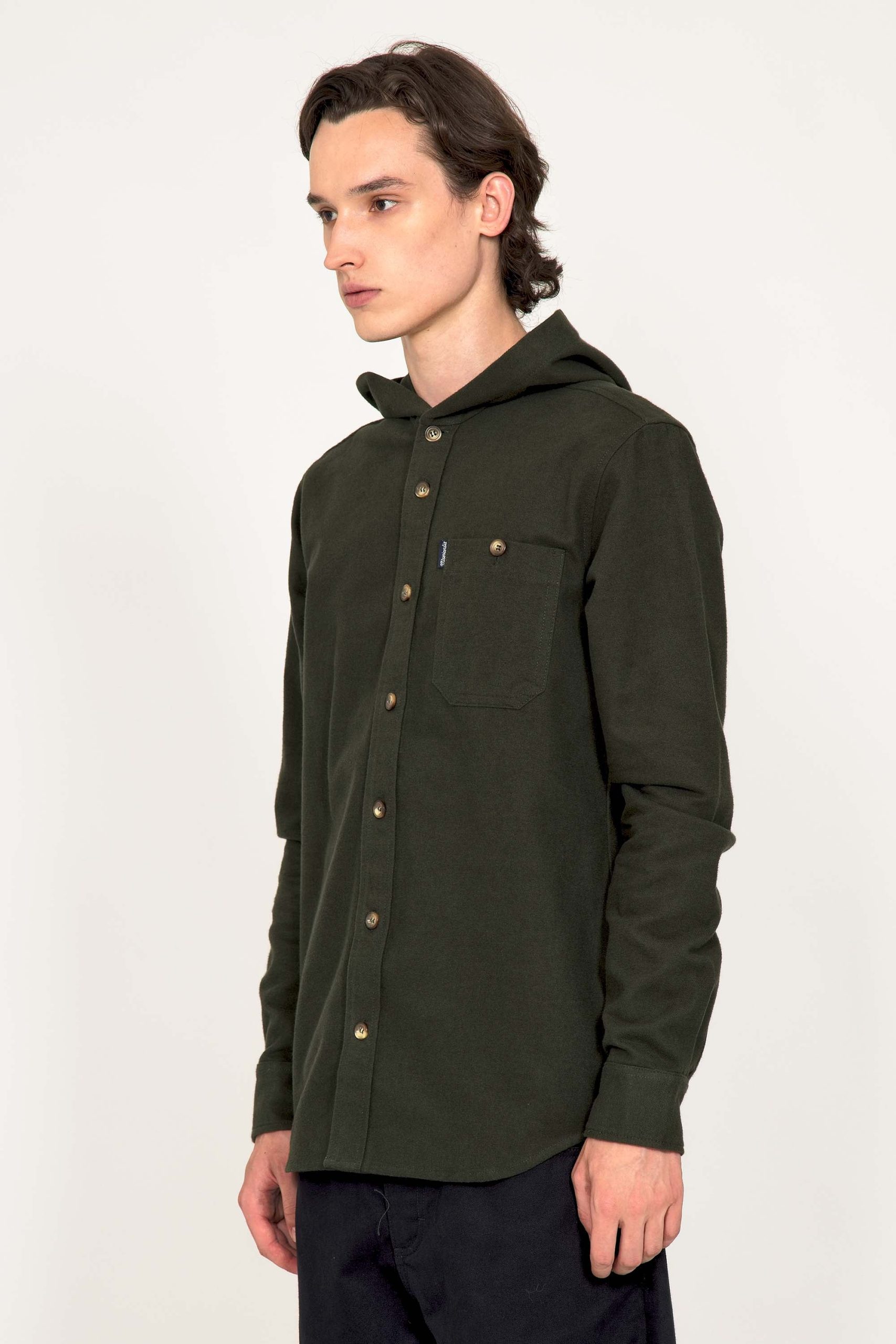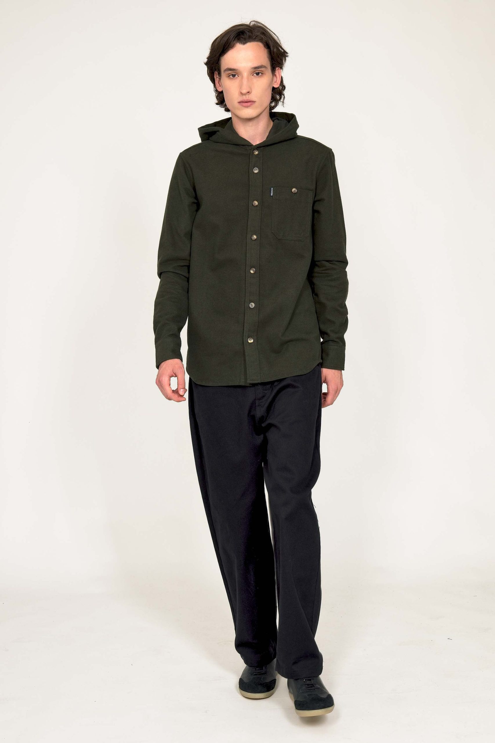 SURCHEMISE KAKI FONCÉ À CAPUCHE EN FLANELLE DE COTON