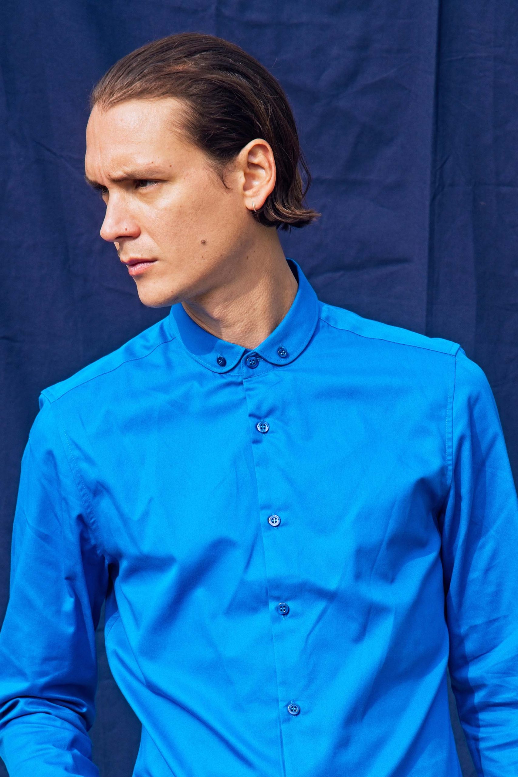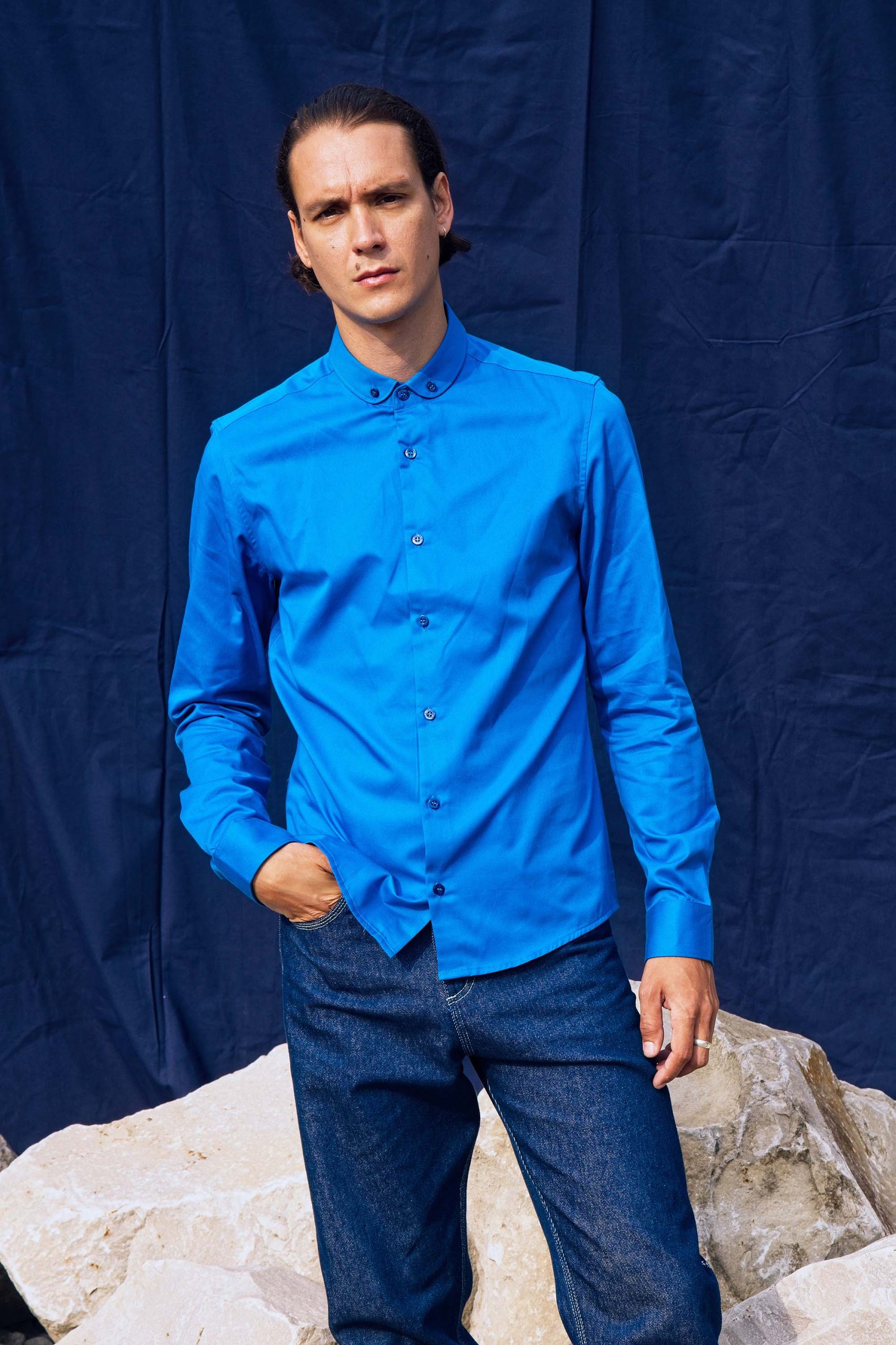 CHEMISE BLEU AVEC COL ARRONDI EN COTON