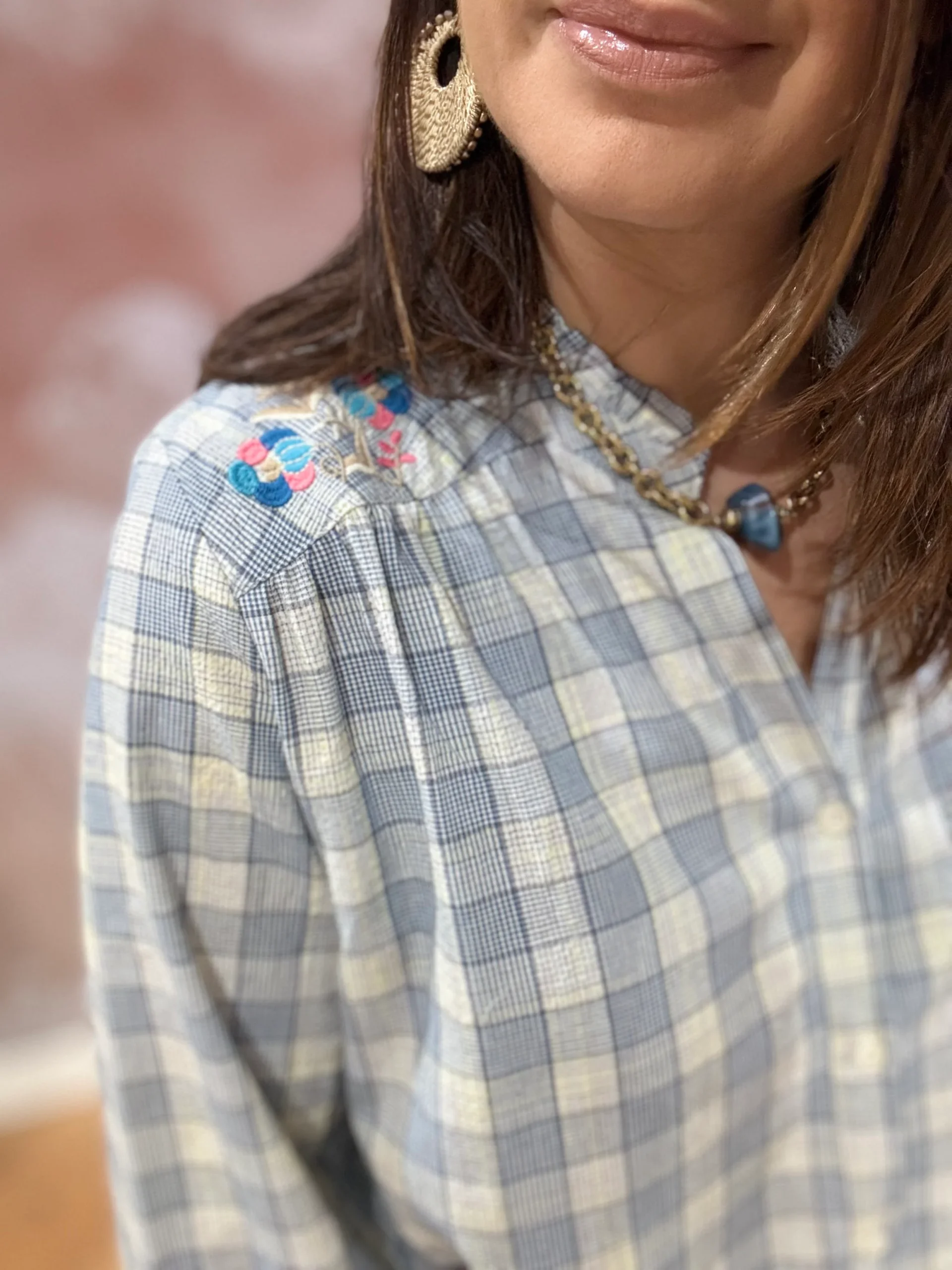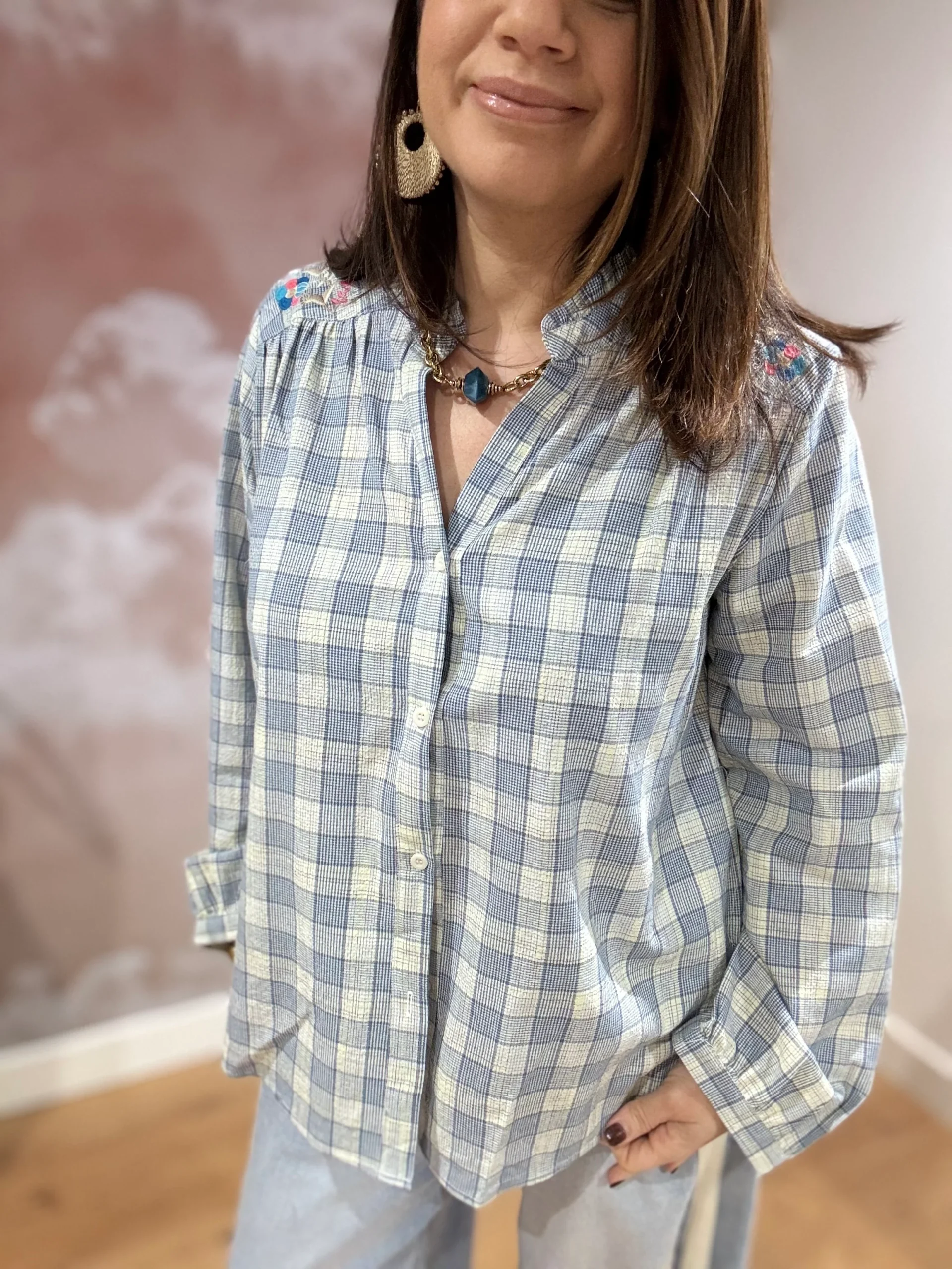 Découvrez notre chemise à carreaux 100% coton, délicatement brodée de fleurs pour un look à la fois tendance et confortable. Une chemise femme élégante parfaite pour apporter une touche chic et féminine à votre dressing.