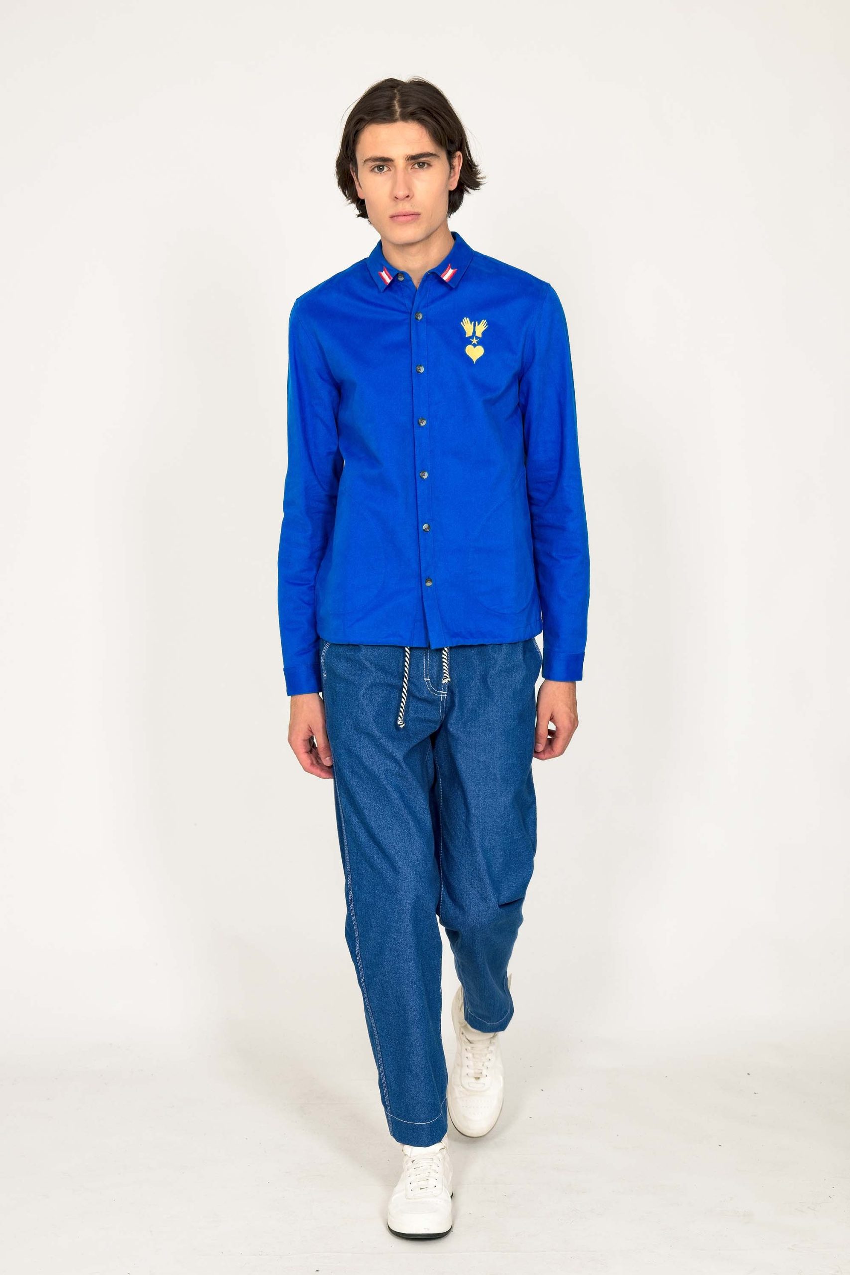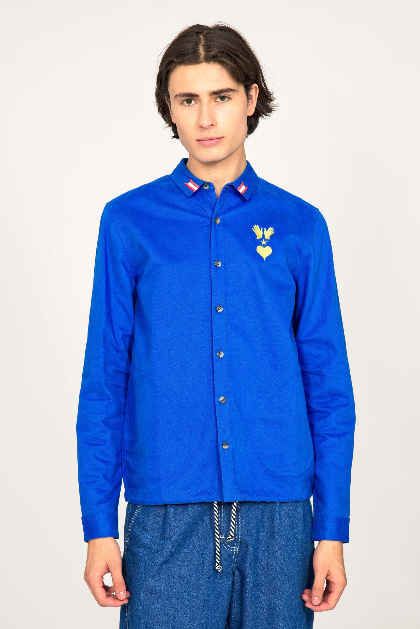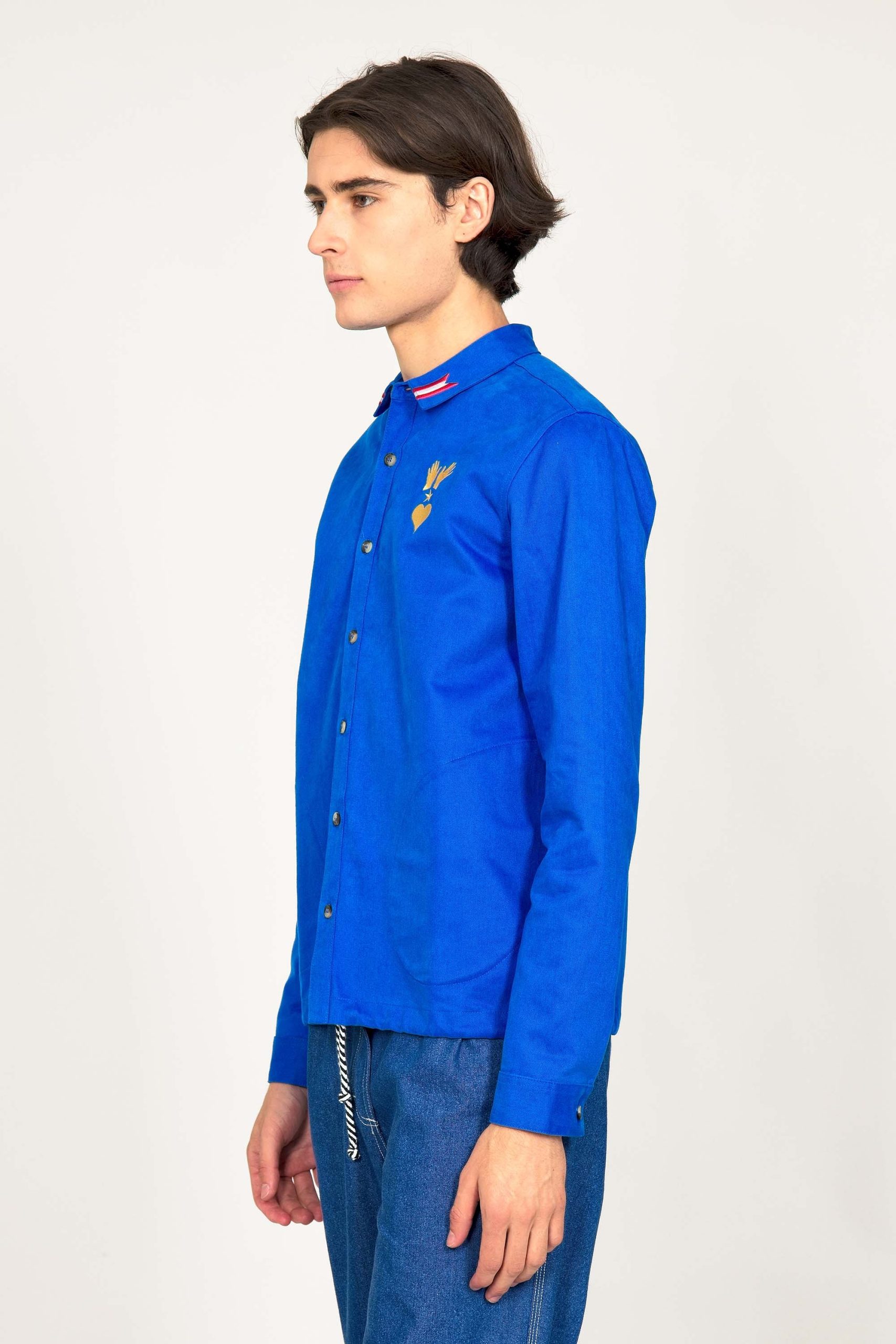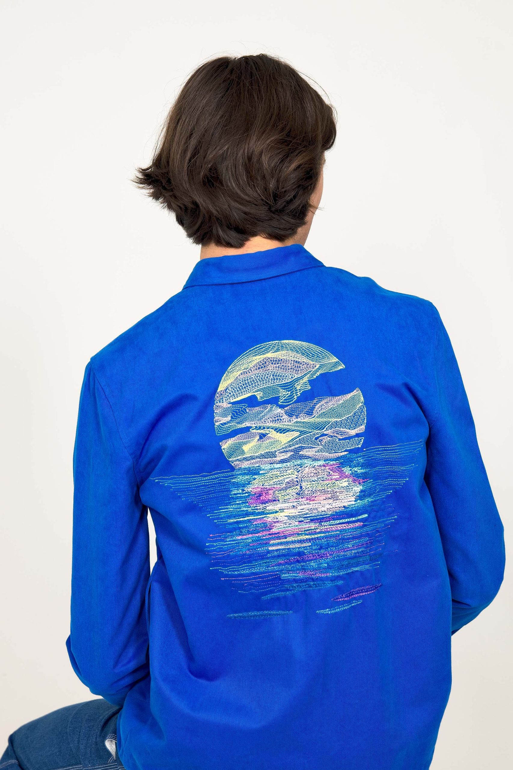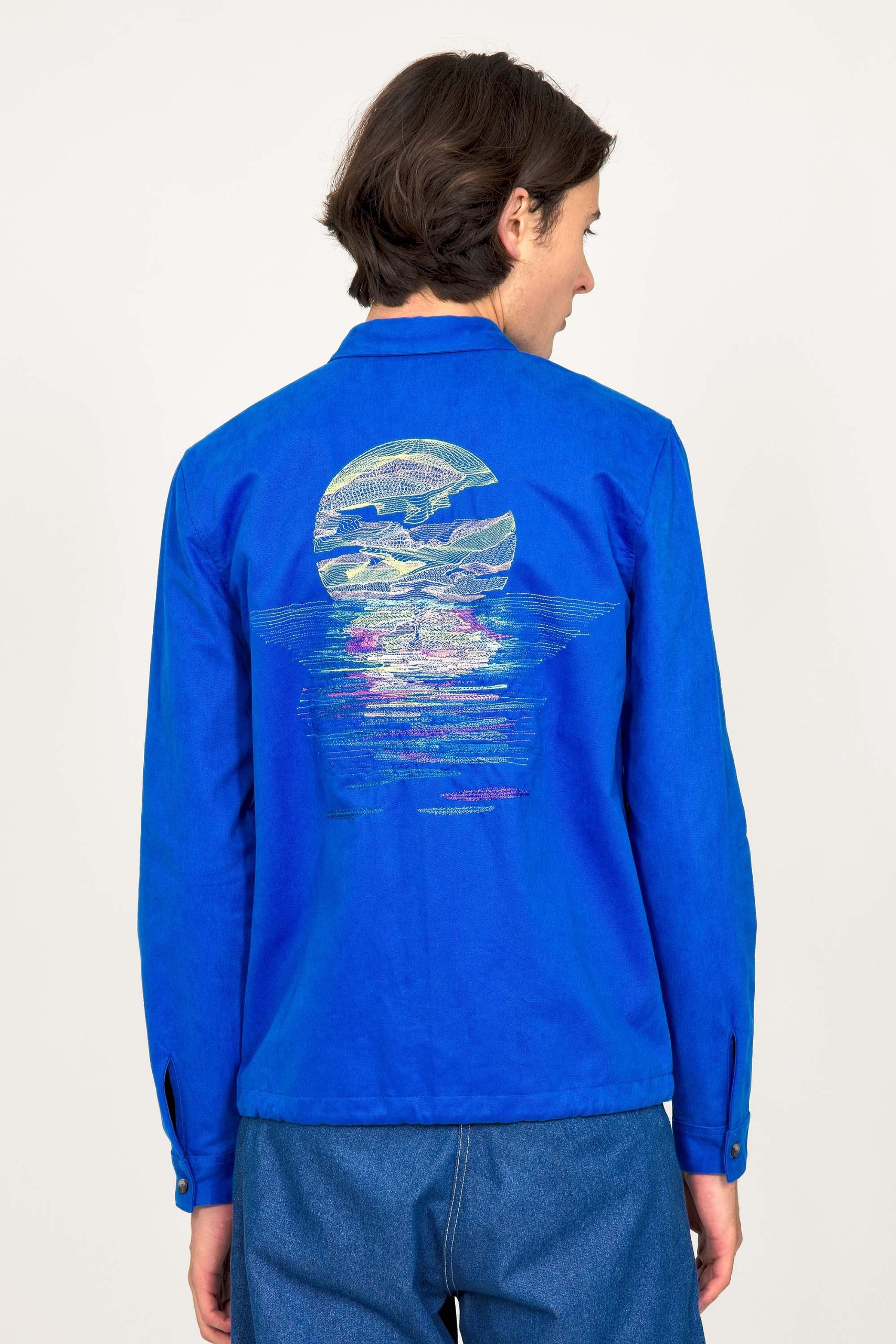 SURCHEMISE BLEU SAPHIR EN COTON BRODÉE AU DOS COUCHER DE SOLEIL