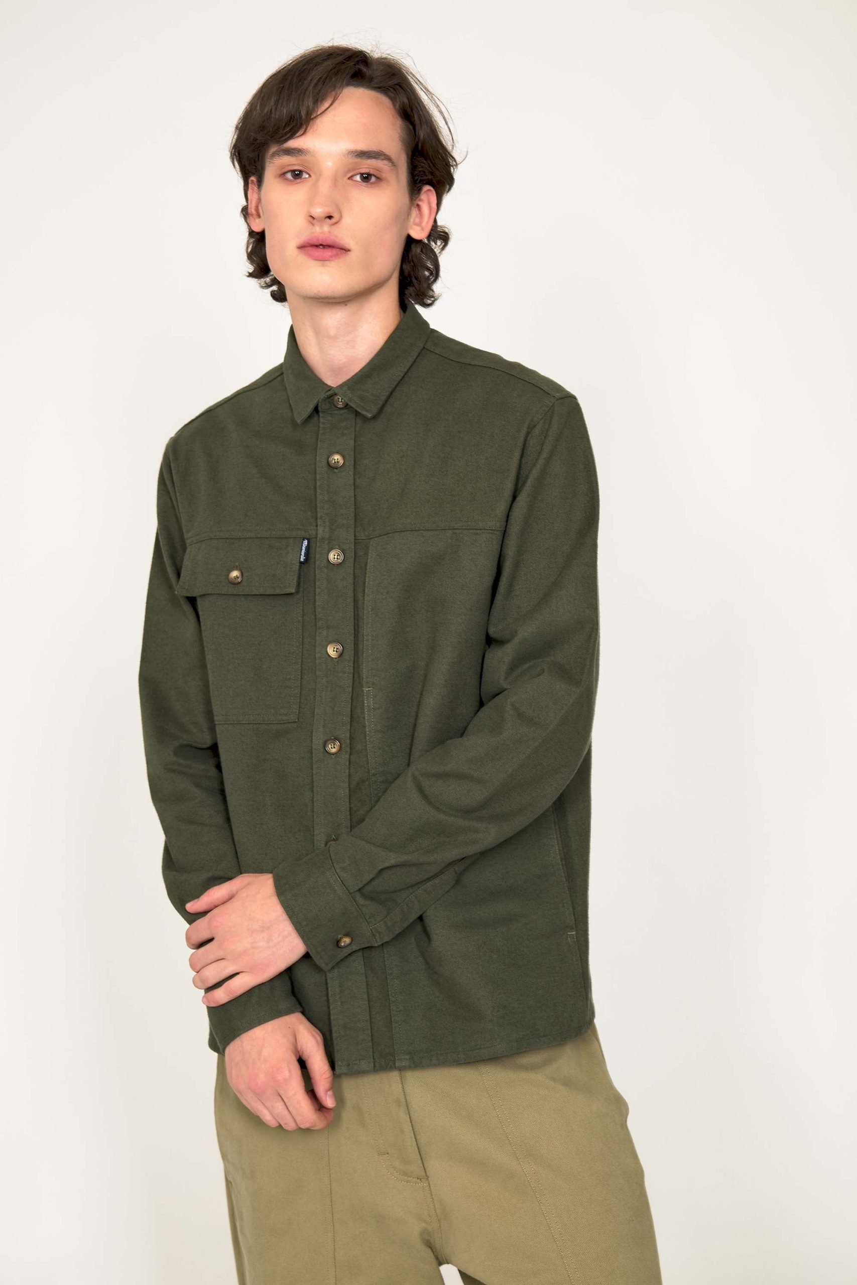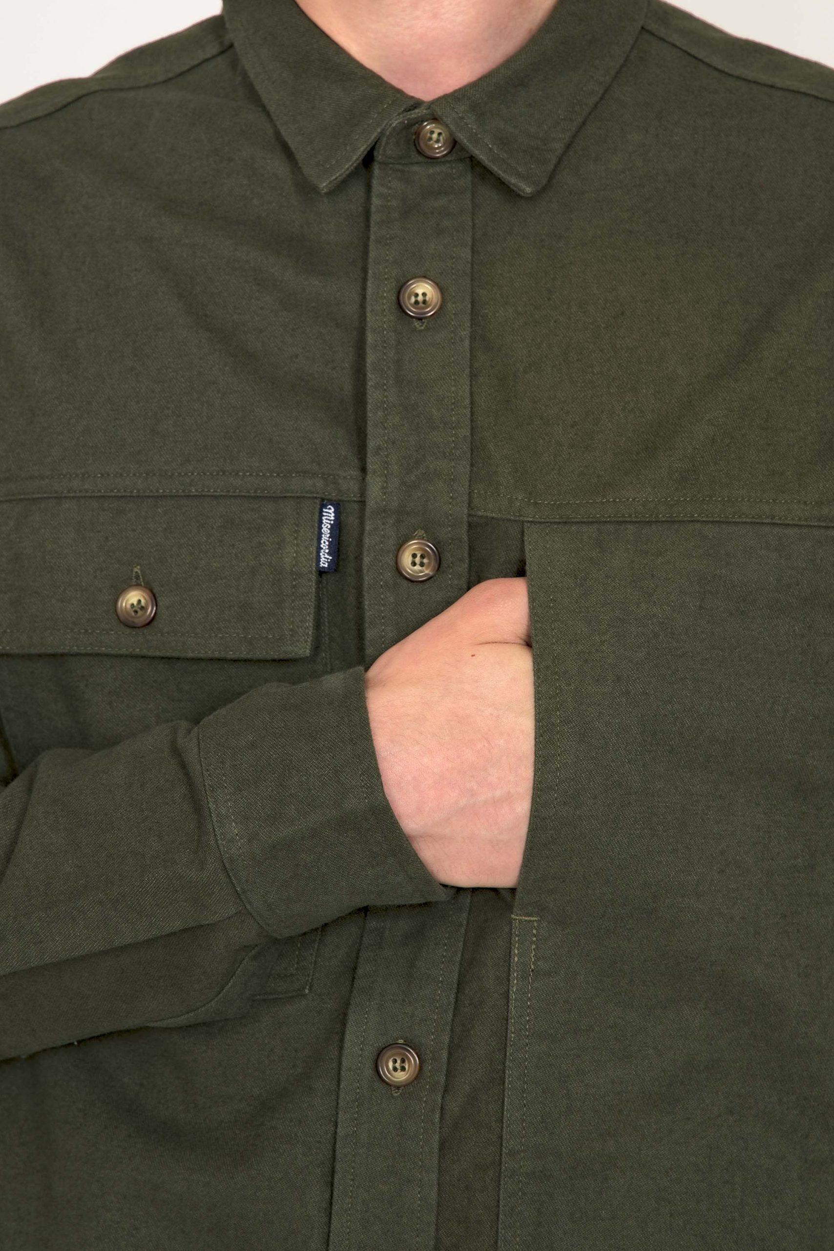 SURCHEMISE VERT CEDRE À POCHE POITRINE EN COTON COUPE CLASSIQUE