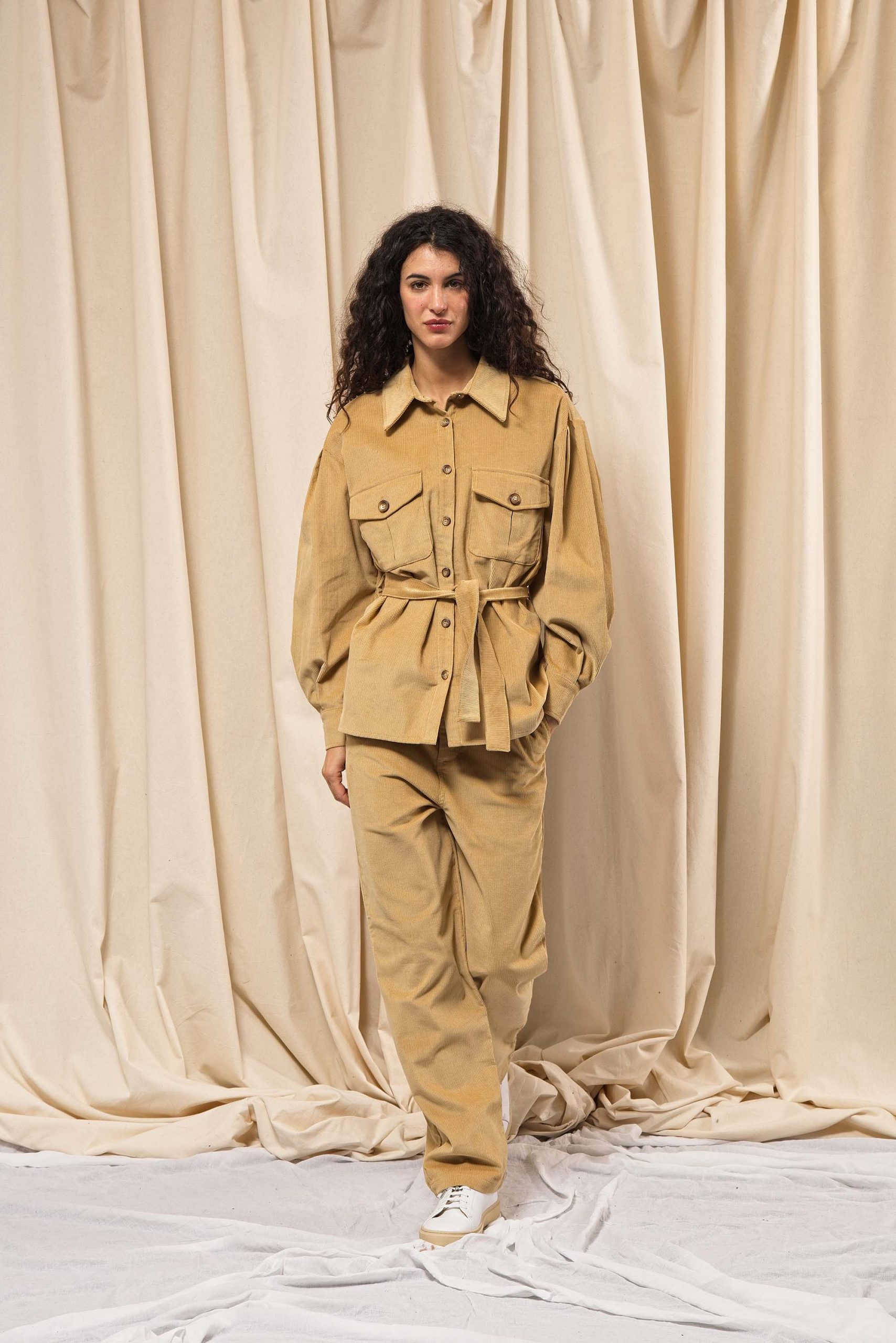 La surchemise Jimena en velours côtelé, à la pointe du style, apporte une touche de luxe à un look décontracté. Sa coupe ample peut devenir cintrée quand elle est ceinturée. C’est une chemise intersaisons qui peut se porter ouverte, en chemise simple ou en sur-chemise, idéale pour toutes les occasions.