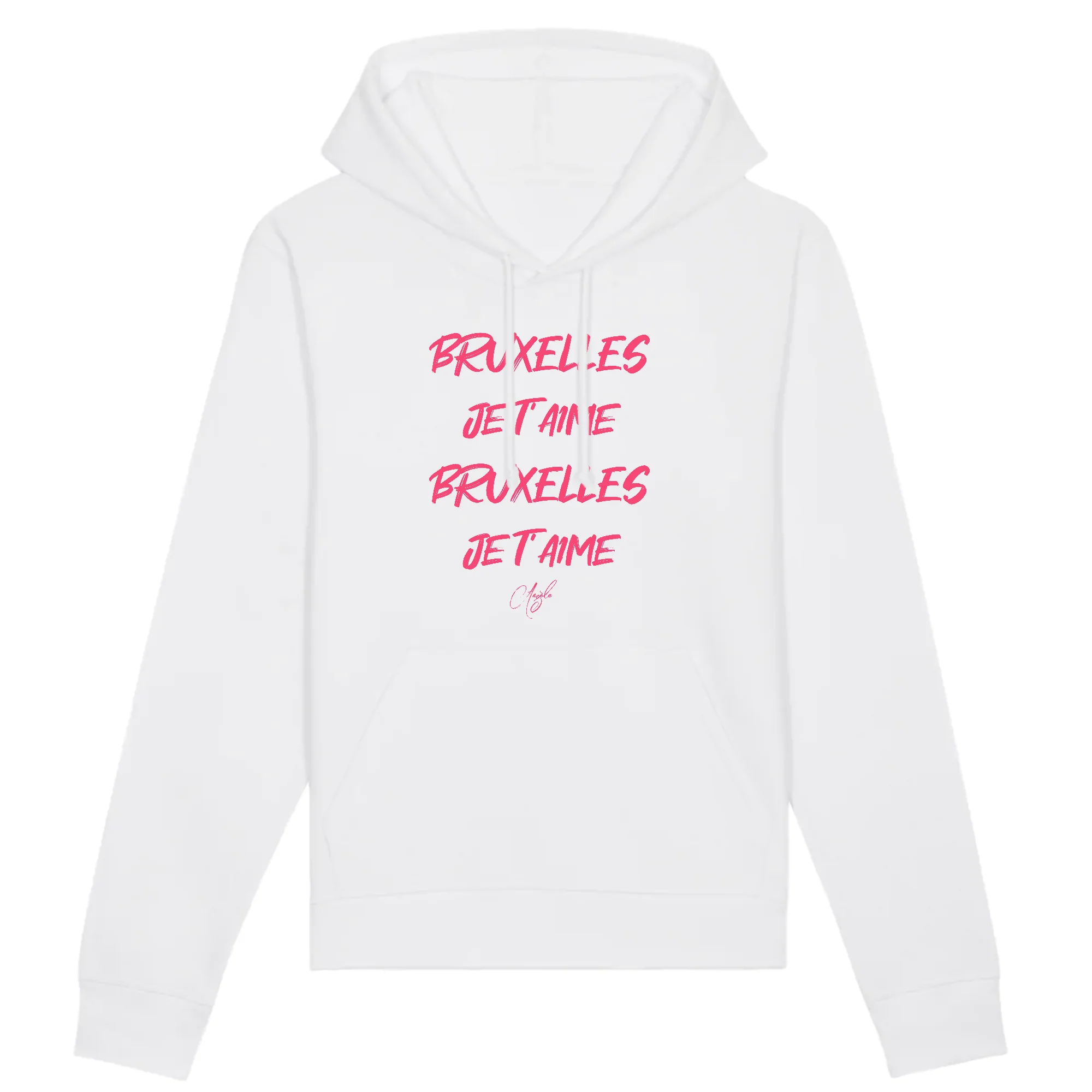 Faites une déclaration de mode unique avec notre tout nouveau pull à capuche femme « BRUXELLES JE T’AIME » ! Fabriqué à partir de coton biologique de haute qualité, notre pull est à la fois respectueux de l’environnement et élégant. Avec son design original et sa typographie audacieuse en rose, vous ne trouverez pas de meilleure façon de célébrer votre amour pour la musique d’Angèle et la Belgique.