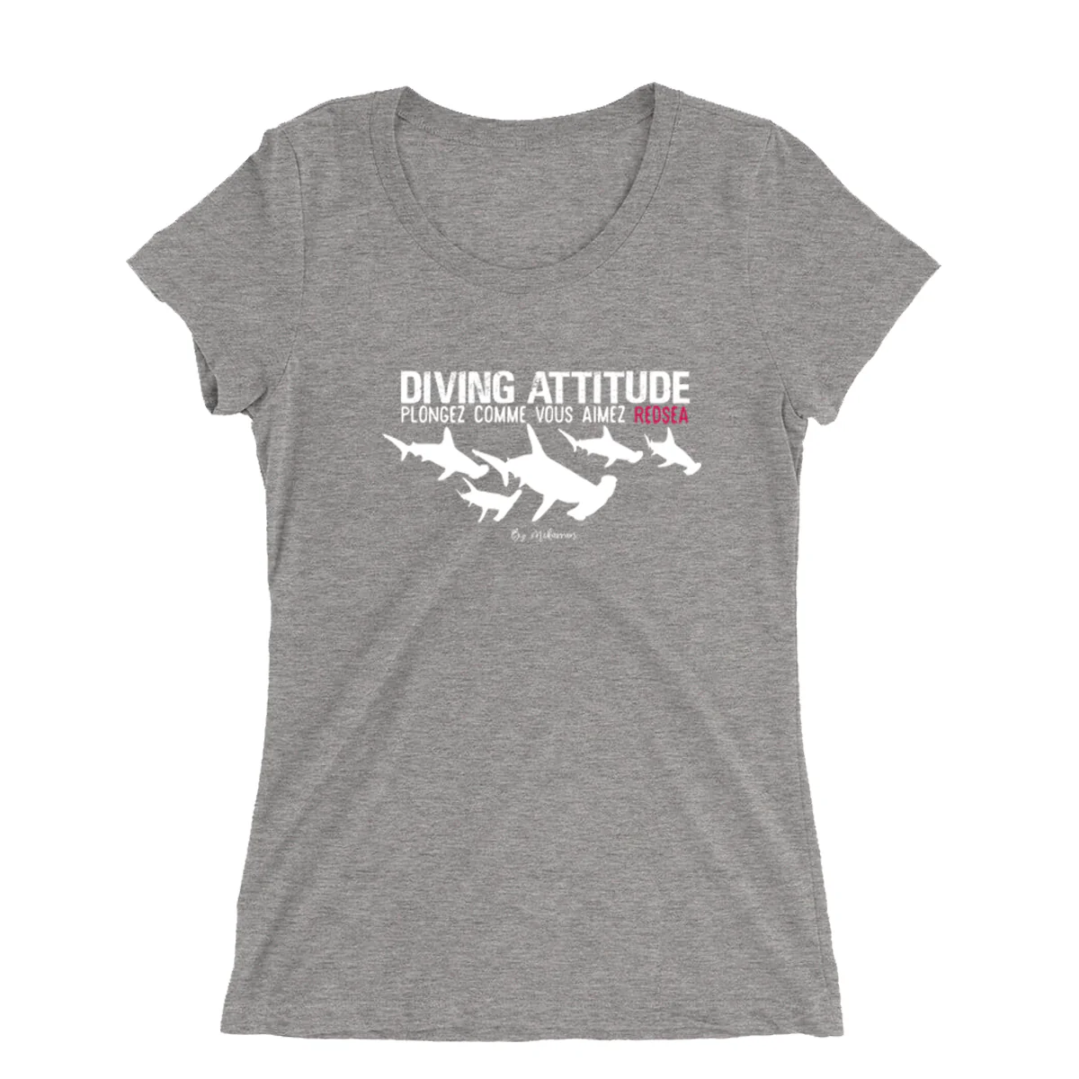 Mokarran et Diving Attitude vous propose ce tee shirt col large pour femme « Requins«