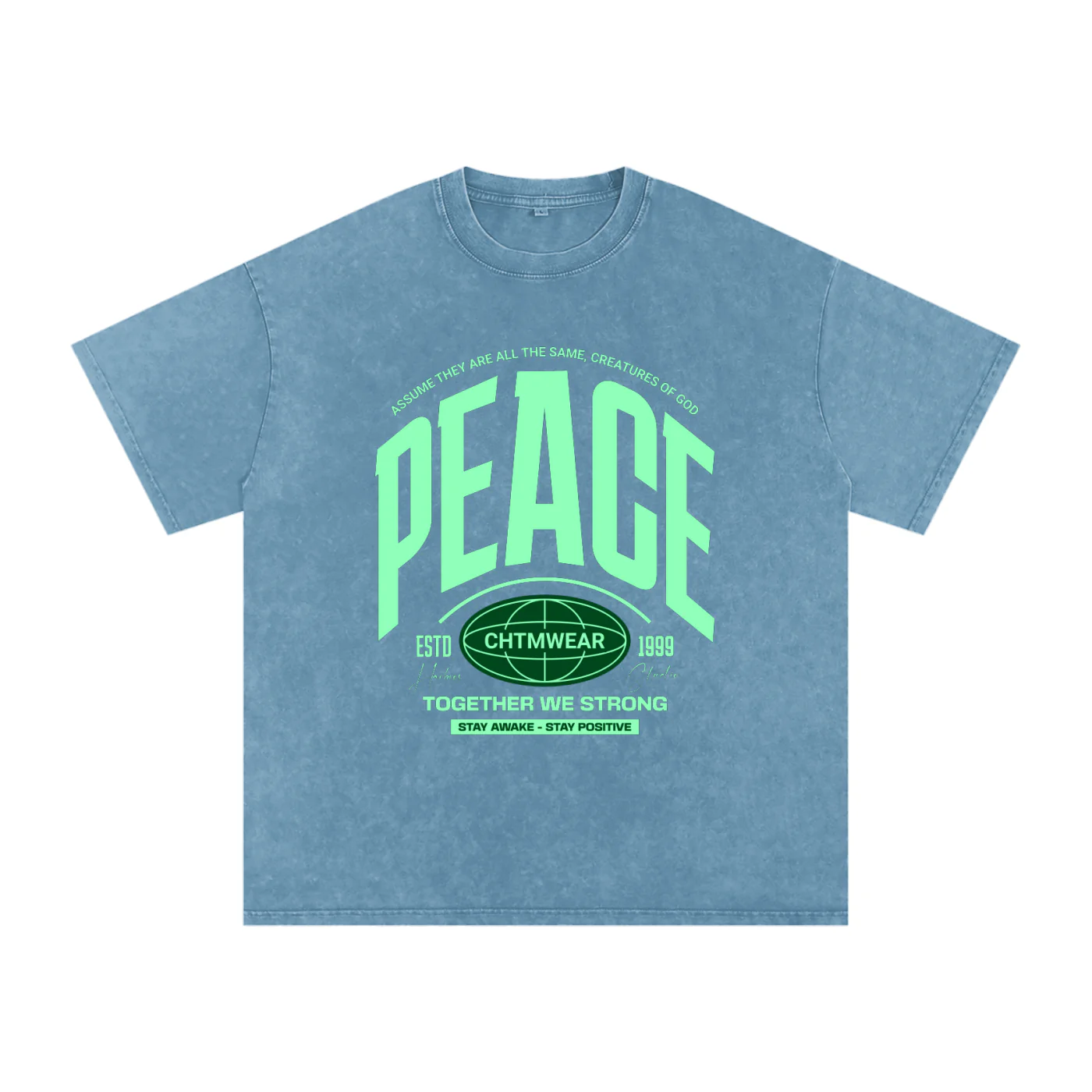 T-shirt unisexe en 100% coton épais (250 g/m²), coupe loose et confortable. Style streetwear avec effet snow wash unique, résistant et facile d’entretien.