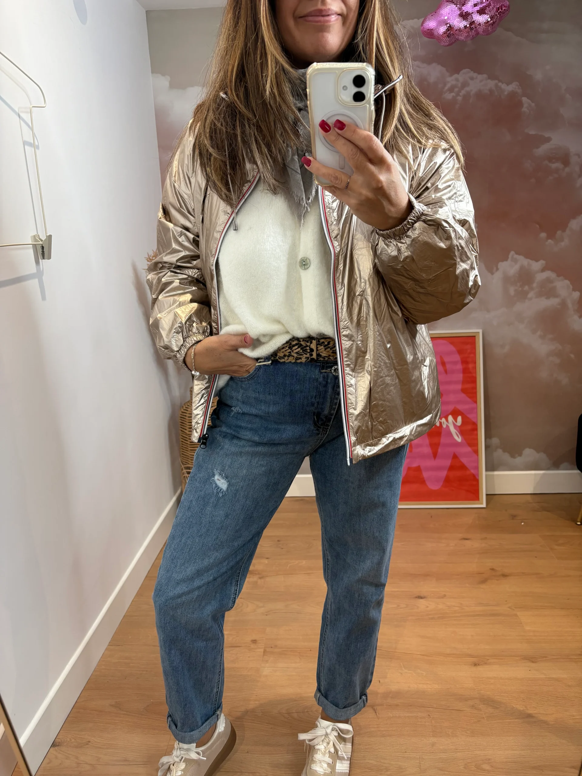 Affrontez la pluie avec élégance grâce à cette veste courte irisée qui allie effet holographique et fonctionnalité. Son coloris cuivre chaud apporte une touche tendance et moderne à toutes vos tenues. ✨ Points forts : • Imperméable et légère, parfaite comme coupe-vent femme pour rester au sec sans renoncer au style.• Coupe courte flatteuse, mettant […]